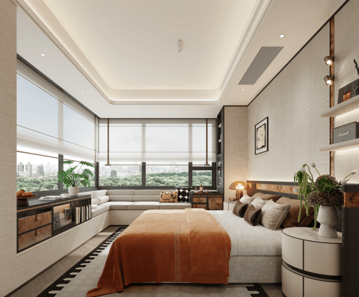 270°无柱化全景主卧,约29㎡的奢华主卧大空间套房,配备独立卫生间与衣帽间,私密性极佳;同时,依托 9.5m 超级底盘的优势,主卧的视野得到了极大提升,远眺三万顷太湖。