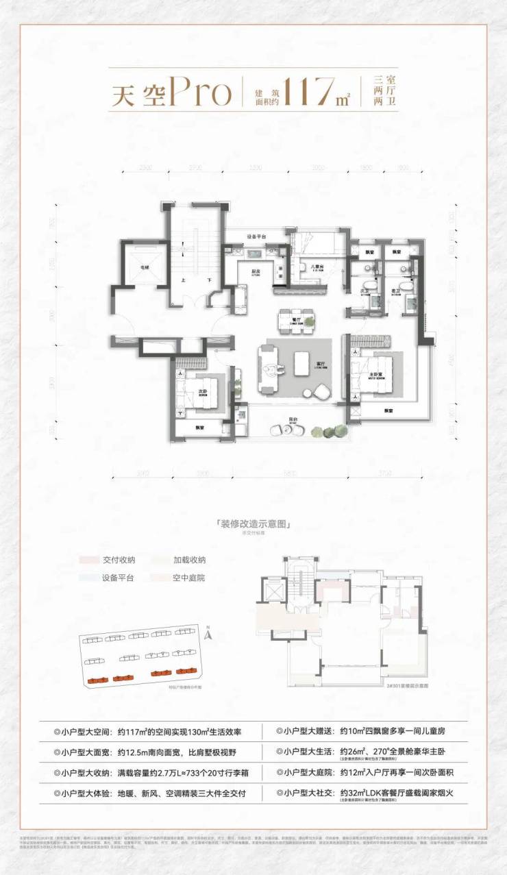 此外,天空之橙还推出了 建面约108㎡、117㎡、132㎡的户型,覆盖刚需、刚改等不同需求,让每一位青年都能找到适合自己的房子。
