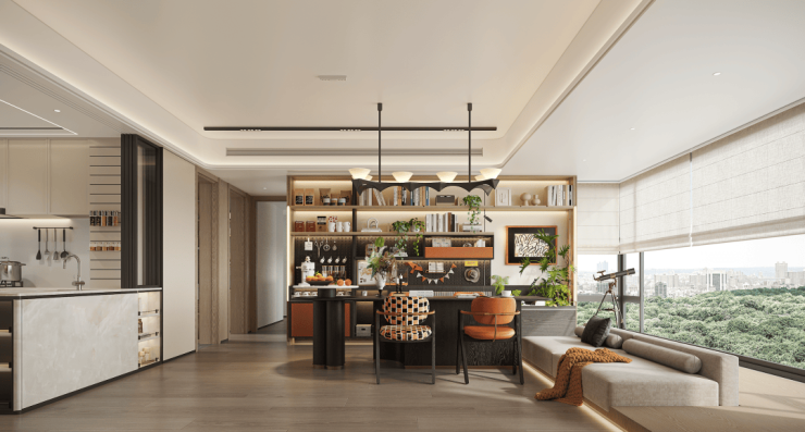 其中,约24㎡的餐客一体化空间,打造了全家人的社交巨厅;约5.7m的IMAX级阳台,种花、观湖、赏星,让小户型也能拥有大阳台的惬意。