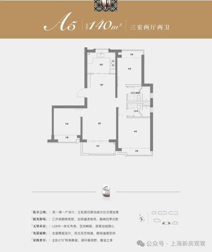 高性价比140㎡全明大三房