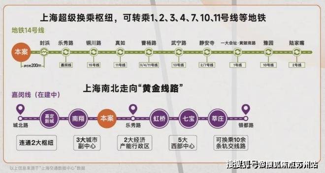其中购房者最关心的交通,是北虹之星的核心卖点之一,实现“3站虹桥、5站普陀、一脉静安”的超级交通配套。北虹之星板块可以说是14号线地铁上盖,并且是双轨交汇之地,从保利虹桥和著步行到地铁14号线封浜路站仅约200米。轨交14号线与上海公认最高能级的2号线平行走向,串联嘉定、普通、静安、黄浦、浦东5区,快速连通真如、静安、淮海中路、黄陂南路、大世界、豫园、陆家嘴等上海最核心潮流商圈。14号线与1号线同等级,是2号线第二条通陆家嘴的线路,可见它的级别之高。并可与1/2/3/4/7/10/11等10余条线条换乘,是上海超级换乘枢纽。