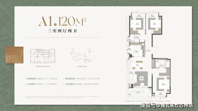 建筑面积约120㎡边套户型,室内面积约87.36㎡,可改造飘窗约1.57㎡,可使用附赠阳台约3.67㎡,独立入户电梯间约7㎡,实得率约81%。