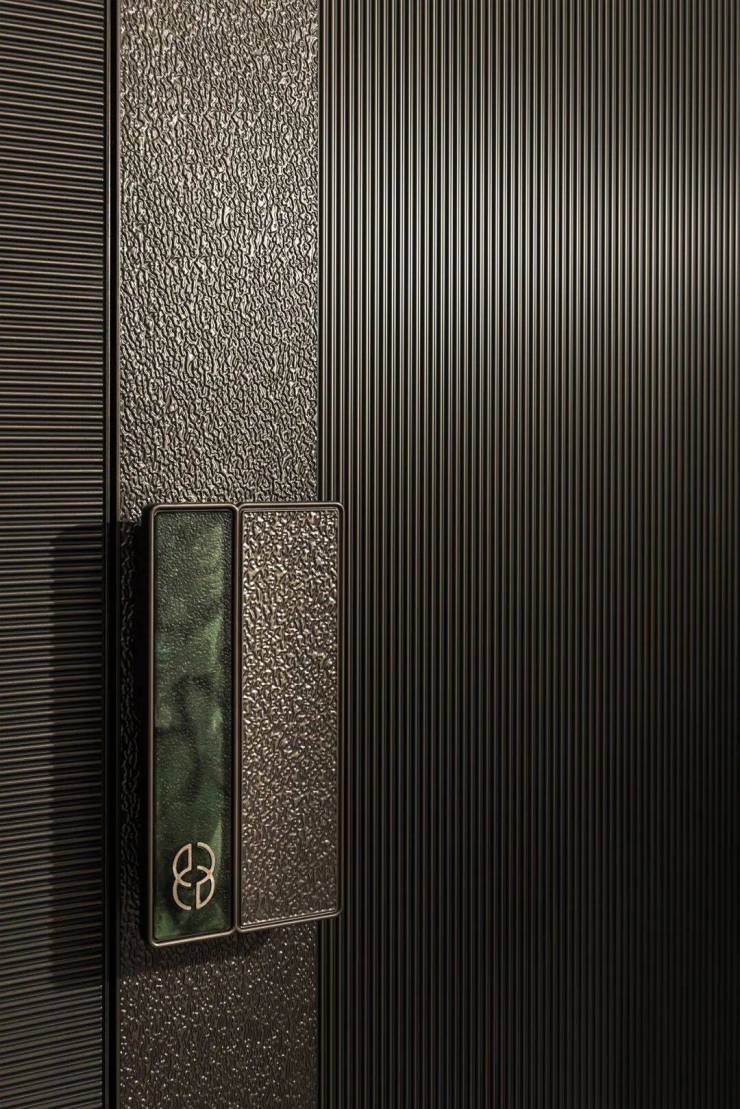 以现代匠心对话东方千年,让每一种材料都超越其本身功能,成为可触摸的东方意境。初见礼仪,铸钢甲子母门搭配内嵌琉璃门锁,自显门楣;玄关处点缀银河金与客厅星耀灰大理石,共著一副朦胧水墨共赏国际东方意境。
