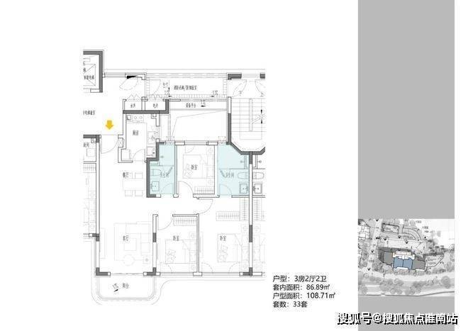 2地块容积率2.94,只有一栋小高层,共67套房源,产品建面约108-148㎡.