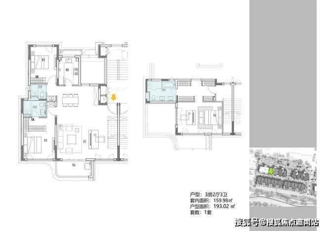 3地块容积率2.33,由一栋18层的小高层和两栋6层的花园洋房组成,共92套房源,产品建面约108-196㎡.