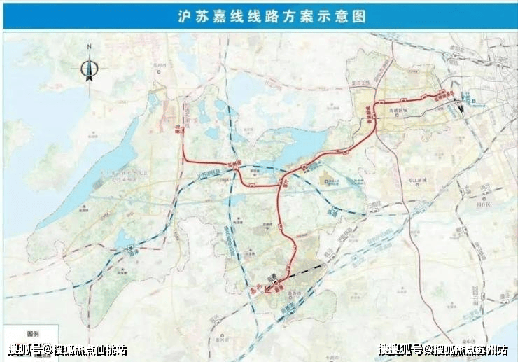 作为联系虹桥主城片区与长三角生态绿色一体化发展示范区的市域铁路,沪苏嘉城际铁路东起虹桥主城片区,西至水乡客厅,途经闵行、青浦两区,衔接江苏省在建水乡旅游线城际铁路以及浙江省在建嘉善至西塘市域铁路等线路,可与上海地铁13号线、上海地铁17号线等线路换乘。