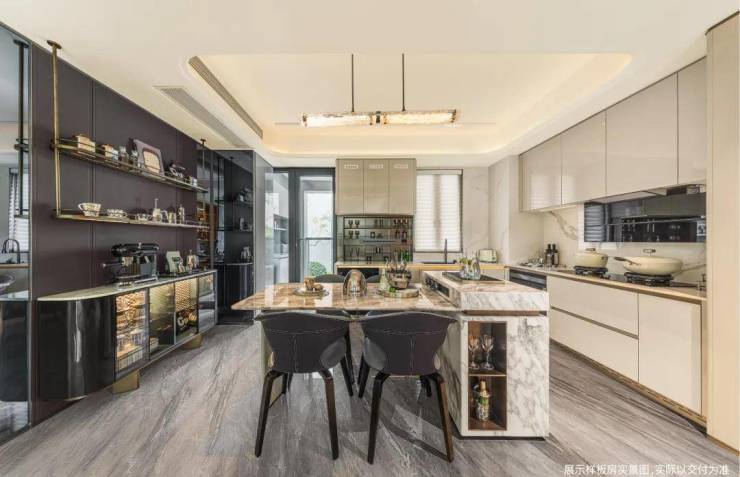 诸如方太厨房三件套、蒸烤一体机、地暖新风中央空调改善三件套,以及主卫智能马桶、智能家居等加分项,全部配齐。