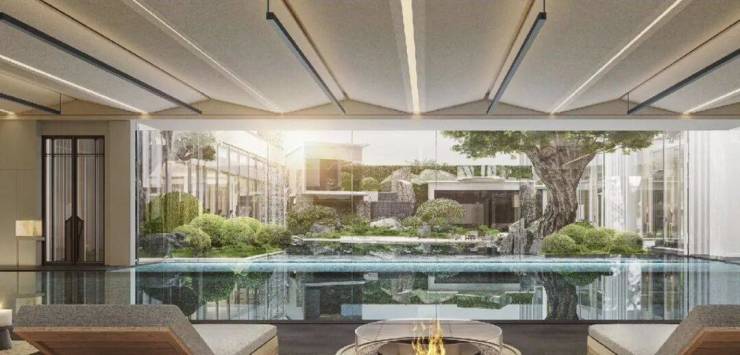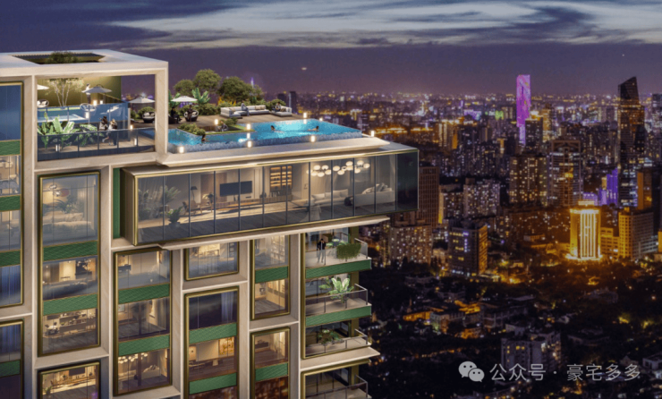 蕞南端的1#和2#楼均配套有私家泳池,还在19F采用了住宅楼当中较为少见的悬挑工艺,延伸出了一定的使用空间,预计就是做类似于“悬挑泳池”的。这里应该就是传说中的“超级大平层”所在位置。