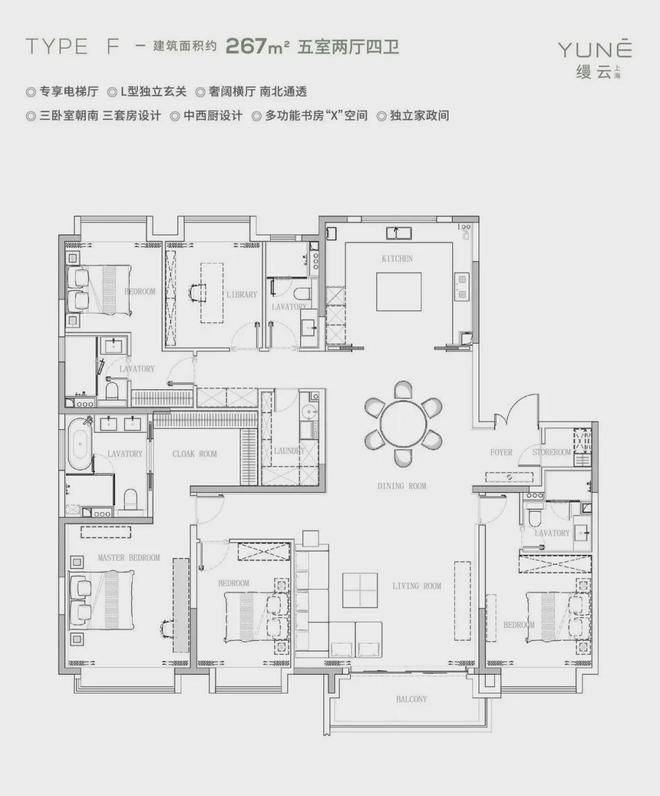 产品定位纯粹,缦云上海主打建面约153-330㎡三至五房大平层,满足高端改善与终极置业需求,圈层纯粹,业主多为高端改善家庭与科创精英。269㎡五房堪称标杆户型,五开间朝南布局,南向总面宽达24.8米,搭配3.5米进深的270°环幕江景阳台,可同时俯瞰江景与社区园林;190-253㎡主力户型,一梯一户设计,私梯入户彰显尊崇,LDK一体化布局,空间开阔大气,适配多代同堂居住。缦云上海售楼处电话:400-8673-567,获取全套户型解析,解锁江景大平层尺度。
