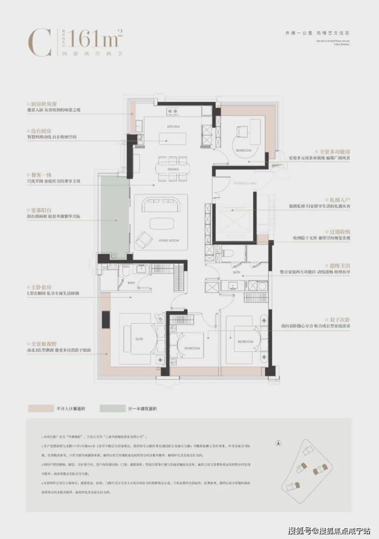 建面约165㎡的四房户型:独梯入户设计,搭配专属电梯厅。大横厅连接270°转角阳台,站在阳台就能将陆家嘴、北外滩的城市景观尽收眼底。三卧朝南的布局,确保每个卧室都能享受到充足日照,即使是北向的书房或客房,也不会因采光不足影响居住体验。