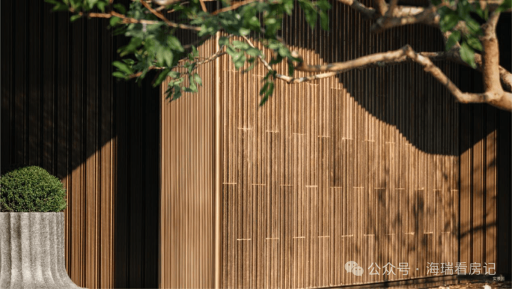 下沉庭院“玉扣绿岛”里,静立着自日本漂洋过海而来,色随四时变幻的百万级羽毛枫「赤羽红枫」;散落着来自太行山脉的186块山西黑「乌金原石」;楼栋首层大堂景墙&电梯厅,藏着经1.3亿万年时间沉淀,自伊朗跨越4600多公里而来,通透纯净的「白雪荧玉」.....