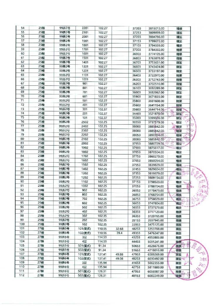 以下为项目最新一房一价表