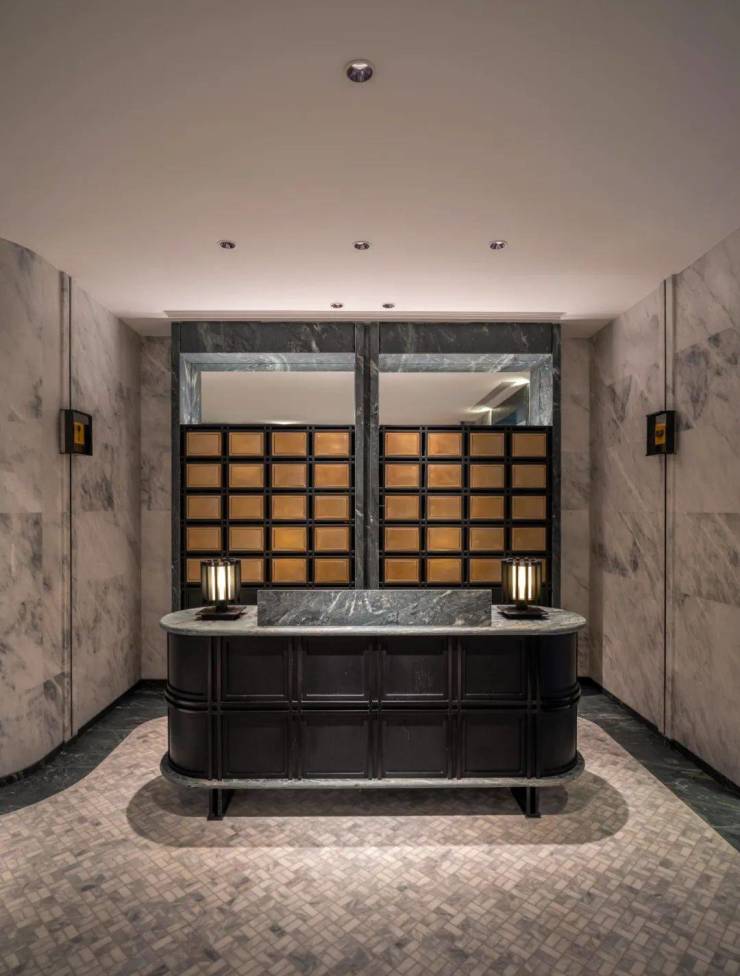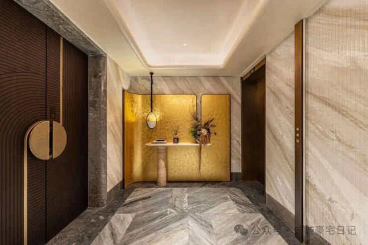 比如,艺术感与质感并存的车库,以及全石材地面铺装的车库大堂。