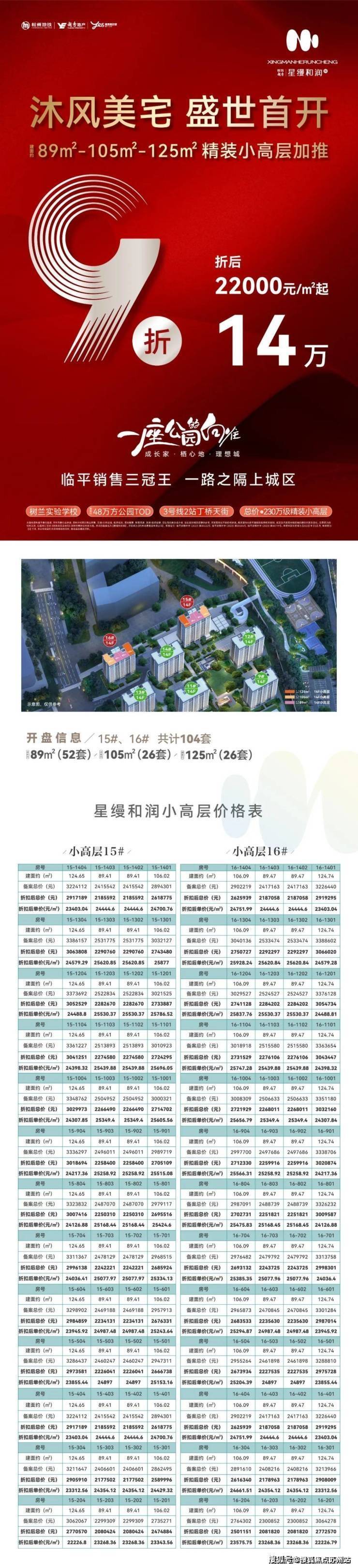 星缦和润精装小高层现场登记现已全面启动,12月16日-17日开盘在即!折后单价22000元/㎡起,首开9折钜惠,12月31日前签约补贴14万/套(iPhone15(256G)手机20台)!好房好价好社区,一座公园的向往,等你来圆梦!