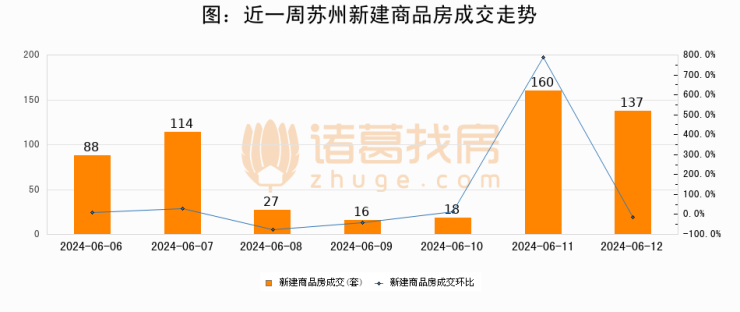 【苏州成交日报】06月12日新房成交137套、二手房243套;涨价房源523套