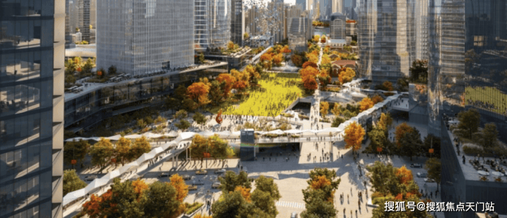 项目占据北外滩核心区稀缺的规整地块,充足的地面体量,让绿城有底气跳出“向下拓展”的常规思路,转而将景观资源向空中延伸,打造“一层+二层+局部下沉”的三重立体游园体系