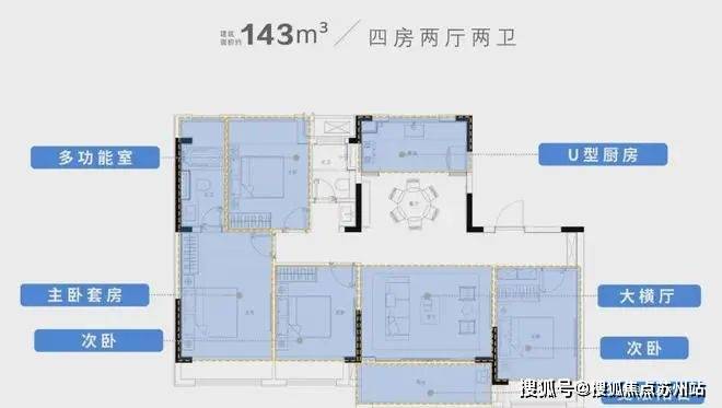 保利琅悦提供约143㎡和163㎡的户型,均为四房两厅两卫设计。户型方正,南北通透,动静分离功能分区明确,满足高端改善居住需求。