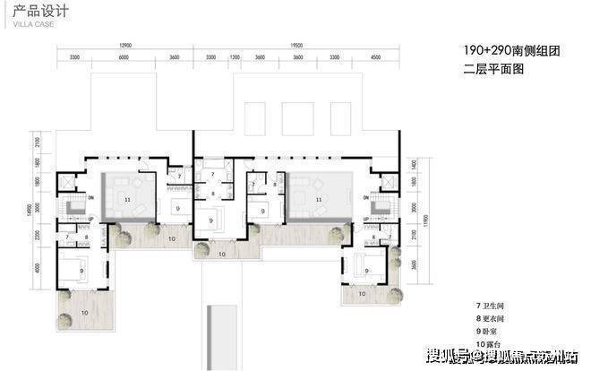 二层都是套房设计+露台+客厅挑空,190的二层是双套房、290的二层是三套房。