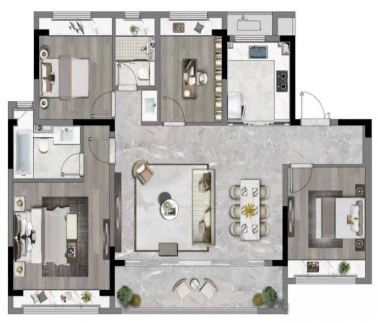 现在来看看家的样子。项目主打两款四房户型,设计都非常出彩。