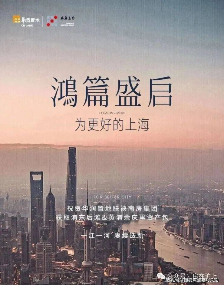 上海浦东华润澐启滨江售楼处电话:400-8123-664【预约看房热线】澐启滨江售楼处电话:4008123664【售楼处电话/地址】澐启滨江售楼处电话:400-812-3664【开发商认证】8月1日,华润置地联袂南房集团以底价244.7亿元,通过100%股权转让的形式,获取浦东后滩及黄浦余庆里资产包。