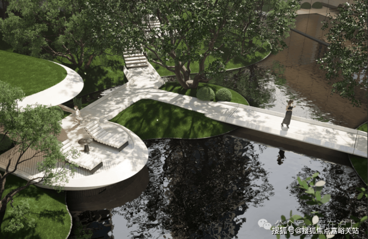 澐启滨江的庄园景观彻底打破行业内景观节点堆砌的通病。项目以杰弗里·巴瓦“雕琢过的荒野”为灵感,打造约3万方全地貌园林,约110米超长绿荫串联派对草坪、雅憩花园、方舟秘境等场景,形成层层递进的立体景观,实现了从“造园”到“造生态”的行业升级。