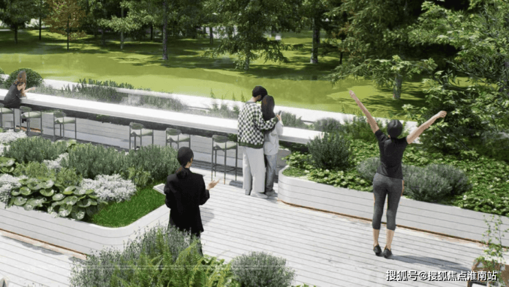 向上造“天际甲板”,悬挑平台衔接社区与公园,形成“内外双园”的松弛感;