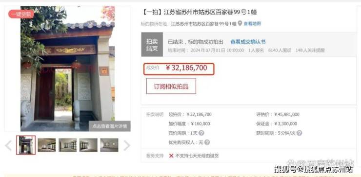 去年(2024年)7月份,这些房源有进行过一次拍卖,当时拍卖也仅有一套房子(1号楼)拍出,成交价格为32186700元,该住宅建筑面积701.84平方米,约合45860元/平。