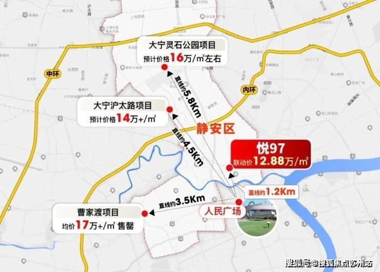 · 直线距离人民广场约4.5公里的沪太路项目预计14万/㎡左右;