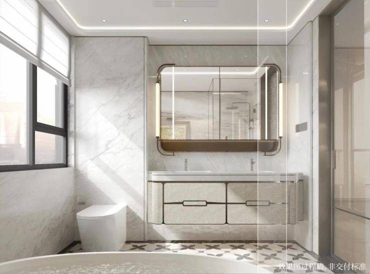 除了大门、公区、会所等,室内也有采用诸如皇家白玉、劳力士灰、安第斯雪景、希腊木纹等大量石材装点,有着独特纹理,温润质感,为空间增添了自然优雅的格调。