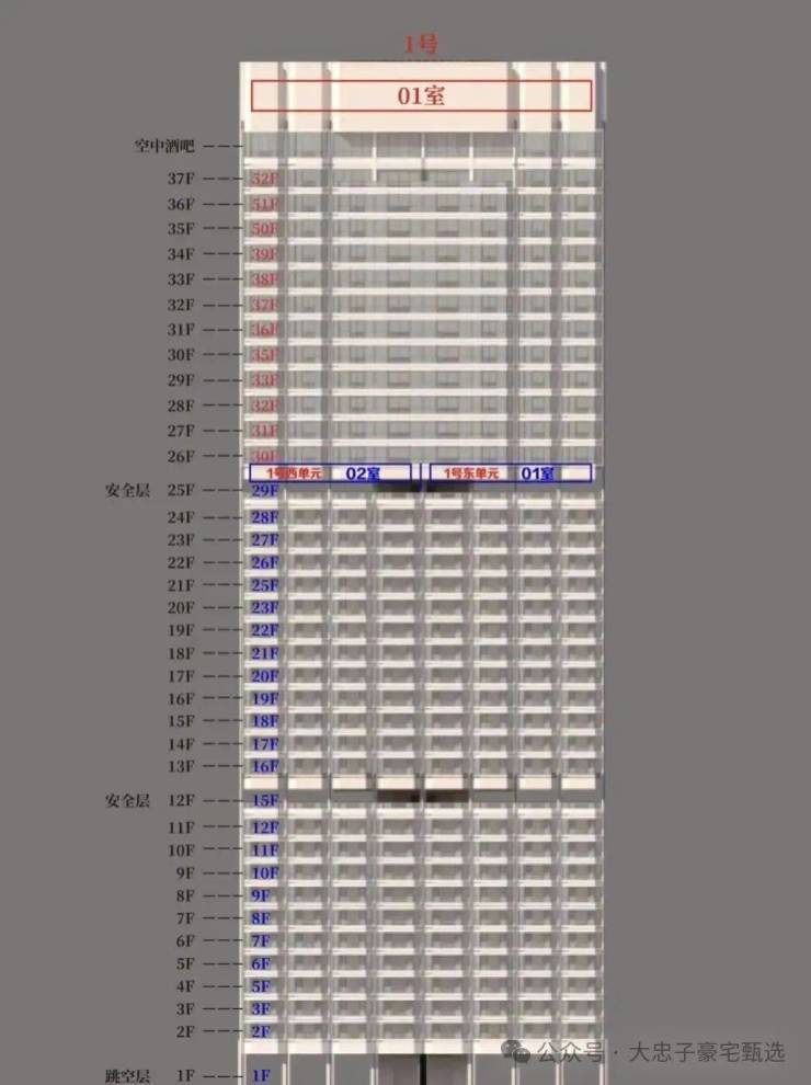 2、户内层高:3.6米(总高:2号楼40层,1号楼38层)3、权属:70年产权住宅(从2019年开始算)4、装标:每平米5万,可私人订制,全球顶奢装修设计5、物业费:36元/平米6、得房率:2号楼75%,1号楼81%7、绿化率:35%8、交房时间:一年半9、车位配比:1:5(地下深挖5层)