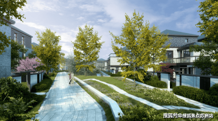【上实·和风院】的庭前绿地是完整的,而且它就是室外的“主心骨”,仔细看户型图,从二楼、三楼的卧室向外望,庭前绿地就在脚下。