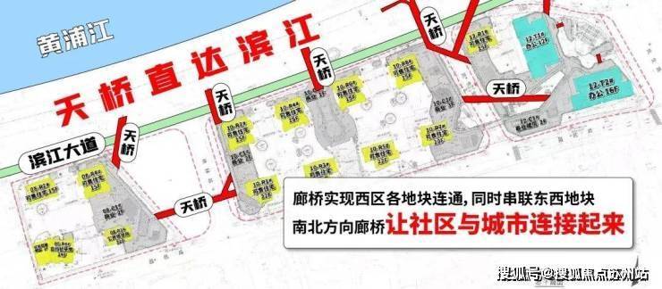 事实上,架空和廊桥也是相辅相成的,架空之后通过廊桥把西区各个地块连接,实现东西地块联通;同时南北方向的5条廊桥,让业主不用过马路就能通达黄浦江畔滨江步道,实现地块内外联动。