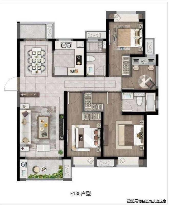 【悦澜天地售楼处电话:400-8783-873】建面约135㎡4房2厅2卫,做到了三开间朝南+双卧室朝南+主卧套房设计+南北通透+动静分离+南北双阳台,