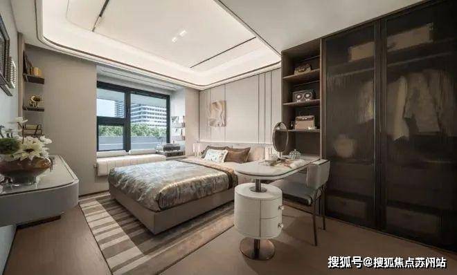 首先是主卧室的豪华套房设计,贯穿南北,配备了独立的衣帽间、卫生间以及飘窗,彰显了非凡的气派和尊贵感。