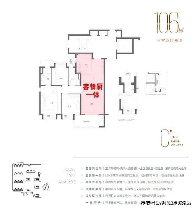 保利光合跃城售楼处电话:400-8123-664✔✔【预约热线】其次是客餐厅与厨房的一体化布局,最大限度地减少了公共区域的空间浪费,创造出的空间感和尺度感远超同价位的其他竞争产品。此外,该户型还提供了充足的灵活空间,每个卧室均设有飘窗,同时设计了一个宽达1.5个开间面宽的阳台,并在一侧采用了转角玻璃设计,进一步增强了阳台的采光效果和视野开阔度。