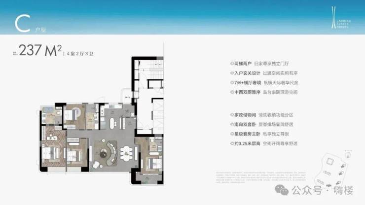 高区:大平层坐拥无遮挡的辽阔视野,最大化城市景观资源