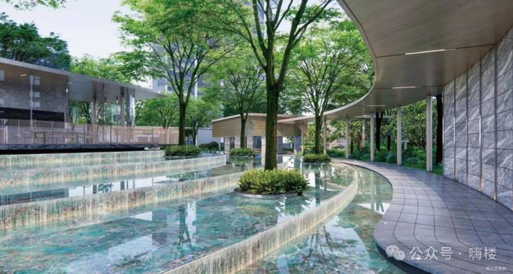 更设有“假日社交盒子”邻里共享空间、下沉式冥想区以及可俯瞰核心湖景的“漂浮湖景坐席”。