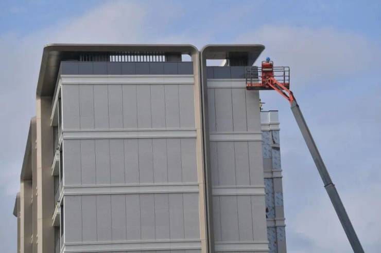 在施工工艺上,项目团队同样追求极致。从成品板材、粘接砂浆、锚固件到填缝材料、密封胶,每一步都经过了严格的筛选、检测和样板实验。施工精度控制达到毫米级,确保每一处细节都尽善尽美。