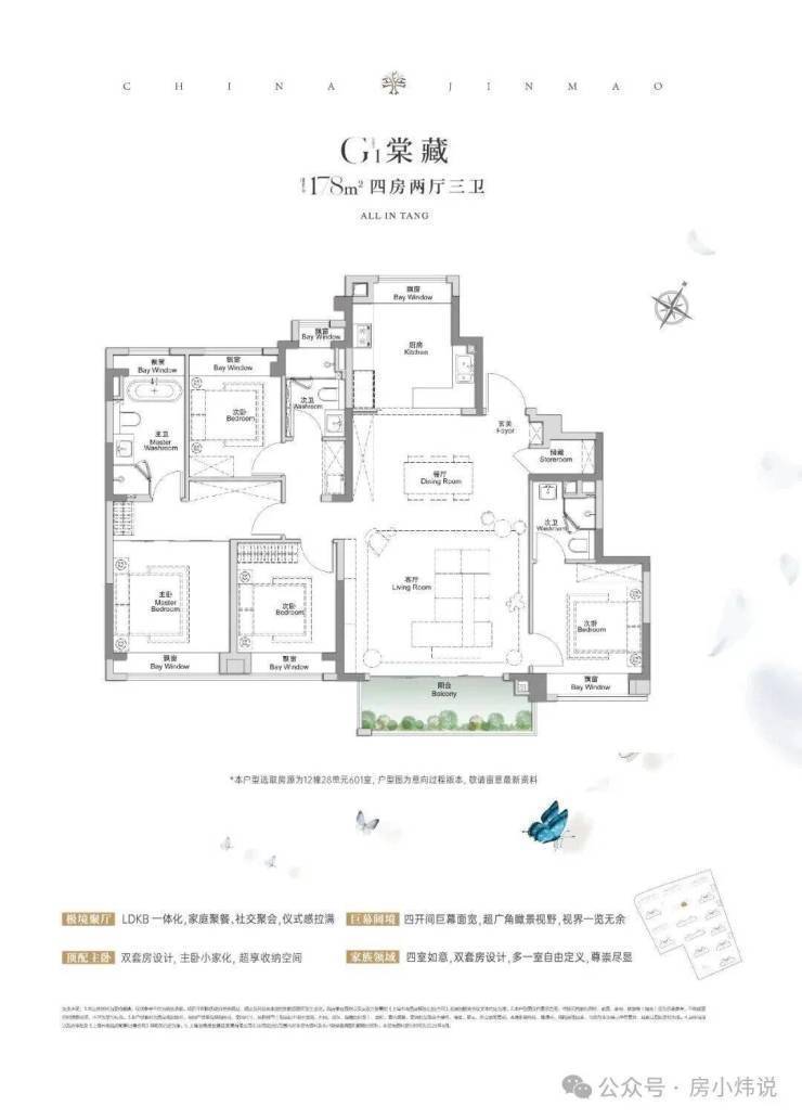 全景舱艺境美宅,标准层约3.1米层高、270度全景飘窗、LDKB一体化、南向跑道阳台、超12米南向全屏开间,无限视野尽收眼底,还有超金喜的满配精装,全上海只有央企金茂才能做得到。