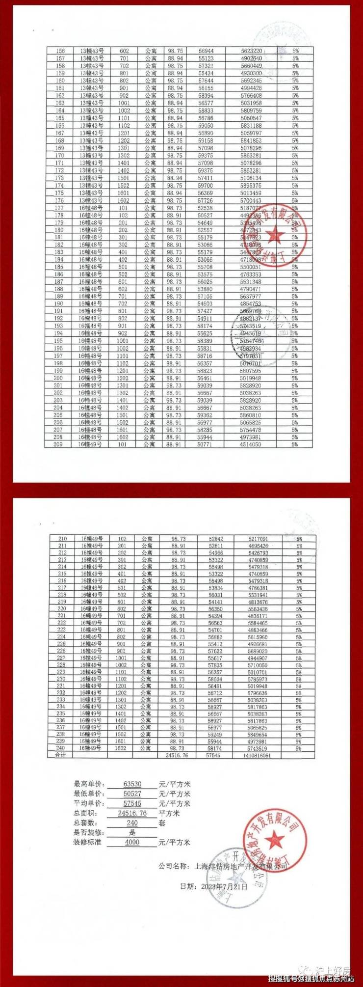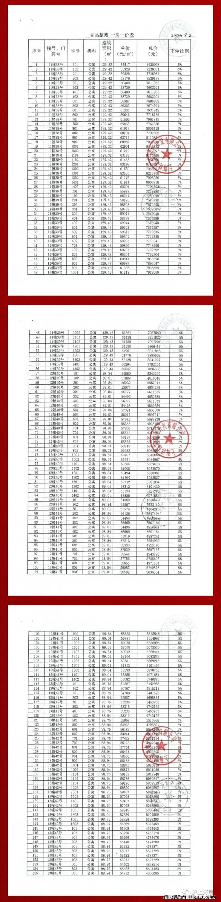 项目一房一价表