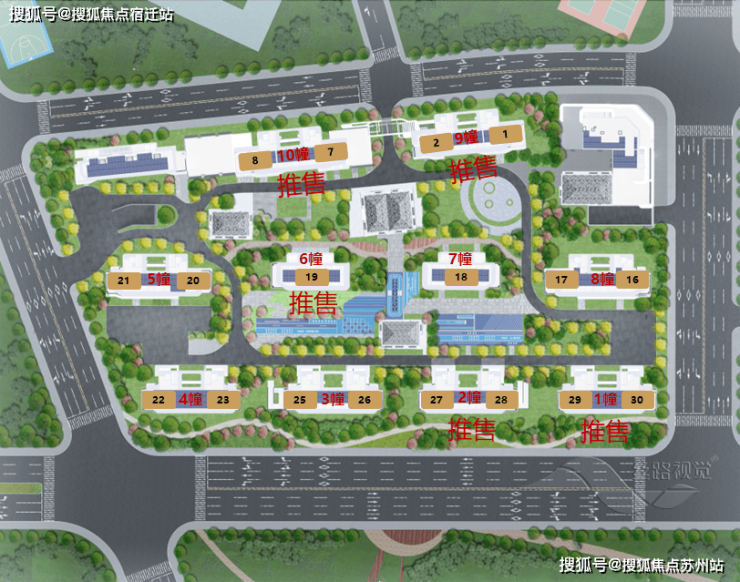 社区内部自带商业配套、卫生服务站、健身点、运动场、社区养老院、日间照料中心、老年活动室、社区食堂、生活服务点、超市等,一站式全龄化社区生活