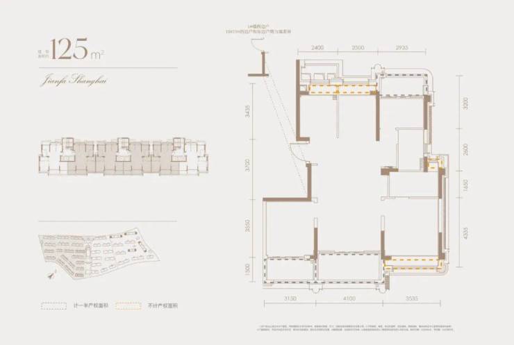 三批价建面约125㎡小高层225、230㎡别墅户型,完美符合这两条定义。