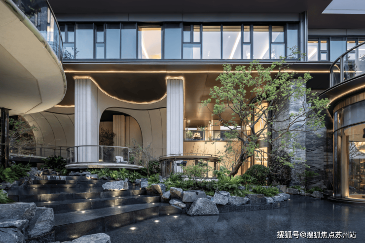 园林景观融姑苏山水意境,以风雨连廊串联景观,植文冠果、樱花等珍稀绿植,分设琢玉园、康养花园,实现全龄段自然互动与美学体验。