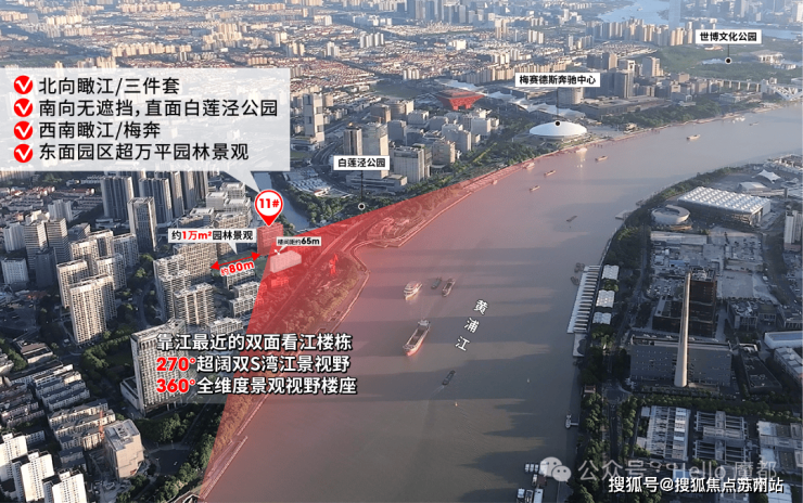 西面瞰江,俯瞰梅赛德斯奔驰文化中心,东面超万平景观园林