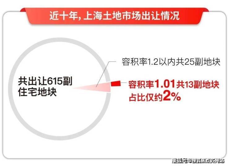 近十年,上海共出让615副地块,容积率1.2以内,共25副地块,占比仅约4%。这其中,容积率1.01,共13副地块,占比仅约2%。