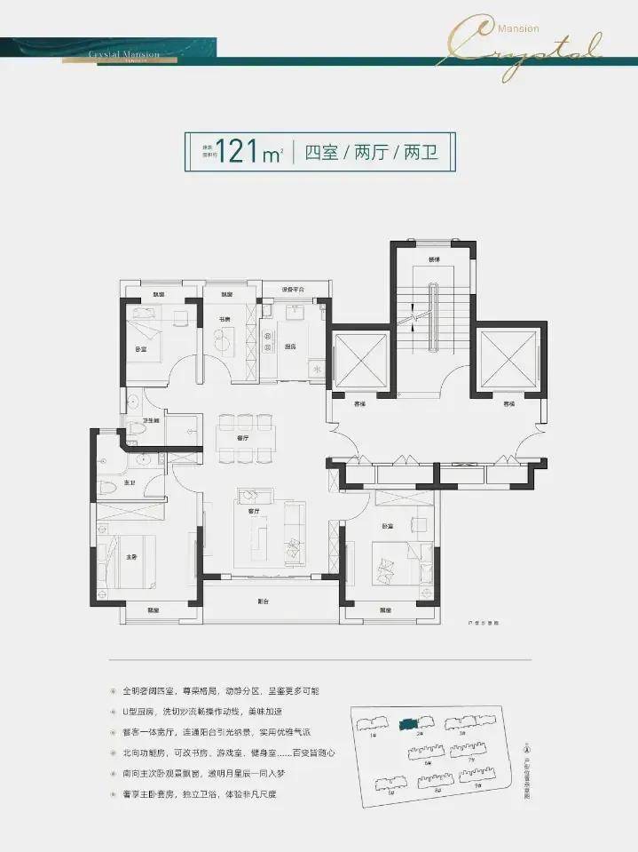 约121平四室两厅两卫,三开间朝南,全卧飘窗,约4.8米面宽客厅,结合超大观景阳台,使客厅的空间感增强,采光效果更好,宽敞气派。奉发左岸晶邸售楼处:400_8123_664(售楼处座机电话)