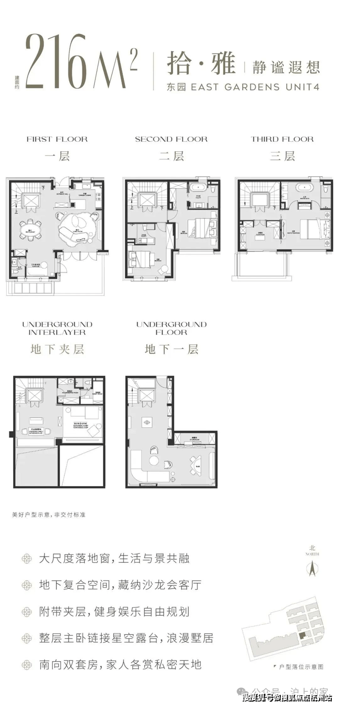 项目打造21套双拼别墅,真正做到了独门独院规制,居于此,有天有地、有星空露台+私家内园+约5.55米层高地下空间等,实现生活跨层联动。