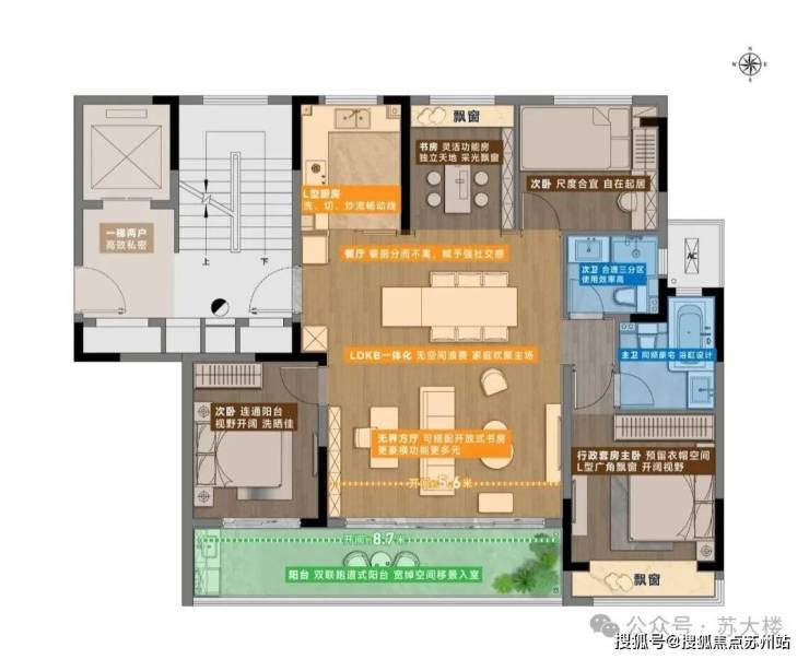 本次推出建面约127㎡户型4+1房型,全部边户, 约8.7米双联跑道式阳台,约5.6米无界方厅, 带浴缸的行政主卧套房,同频市面常见160㎡大平层的4房格局,满足家庭待客留宿、长辈久居等一系列生活需求。