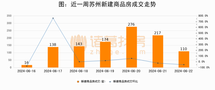 【苏州成交日报】06月22日新房成交110套、二手房23套;涨价房源241套