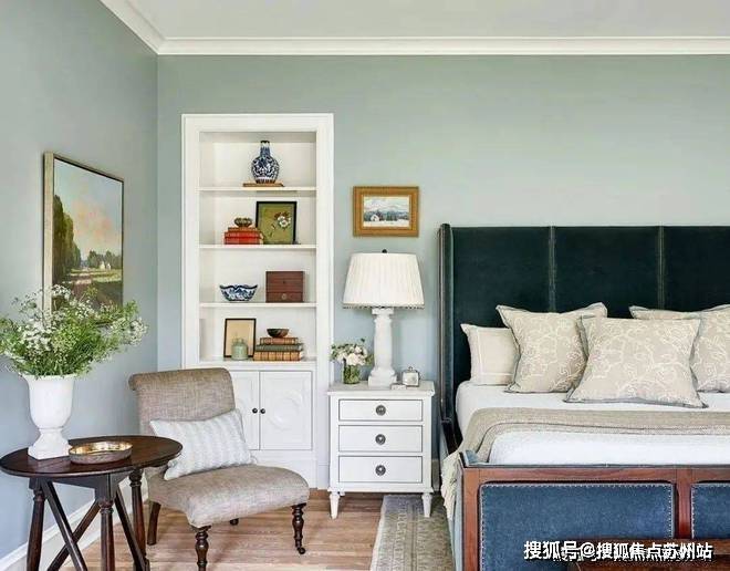 卧室内的摆设以现代设计为主,但地面上天鹅绒的地毯、柔软的床单和复古的吊灯,无一不展现出维多利亚时期的风情。